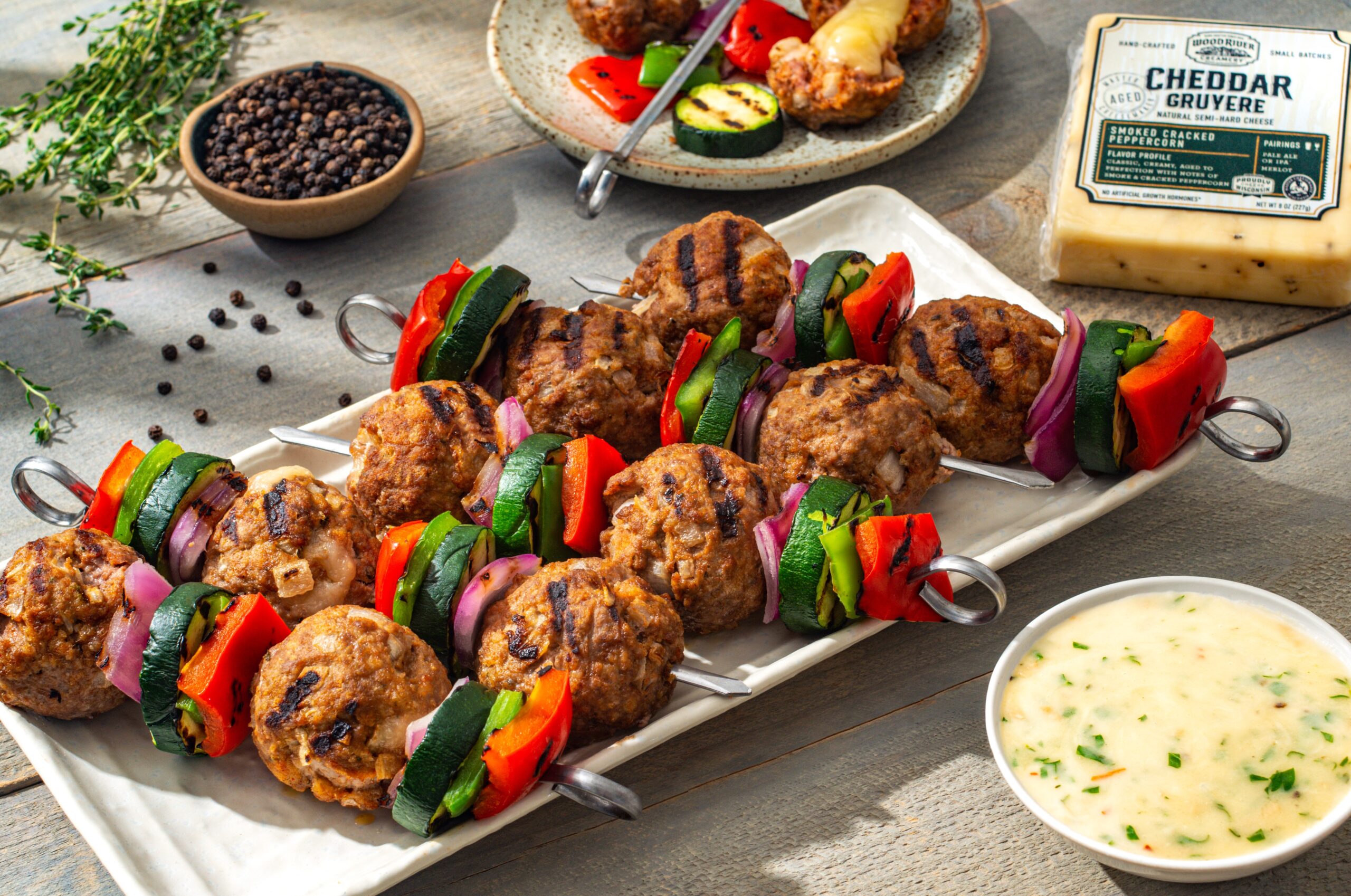 Fire up the grill! These ooey-gooey meatballs are perfect for summertime barbecuing. Smoky and delicious, these skewers are versatile and pair perfectly with grilled potatoes, rice, pasta, or a fresh garden salad.